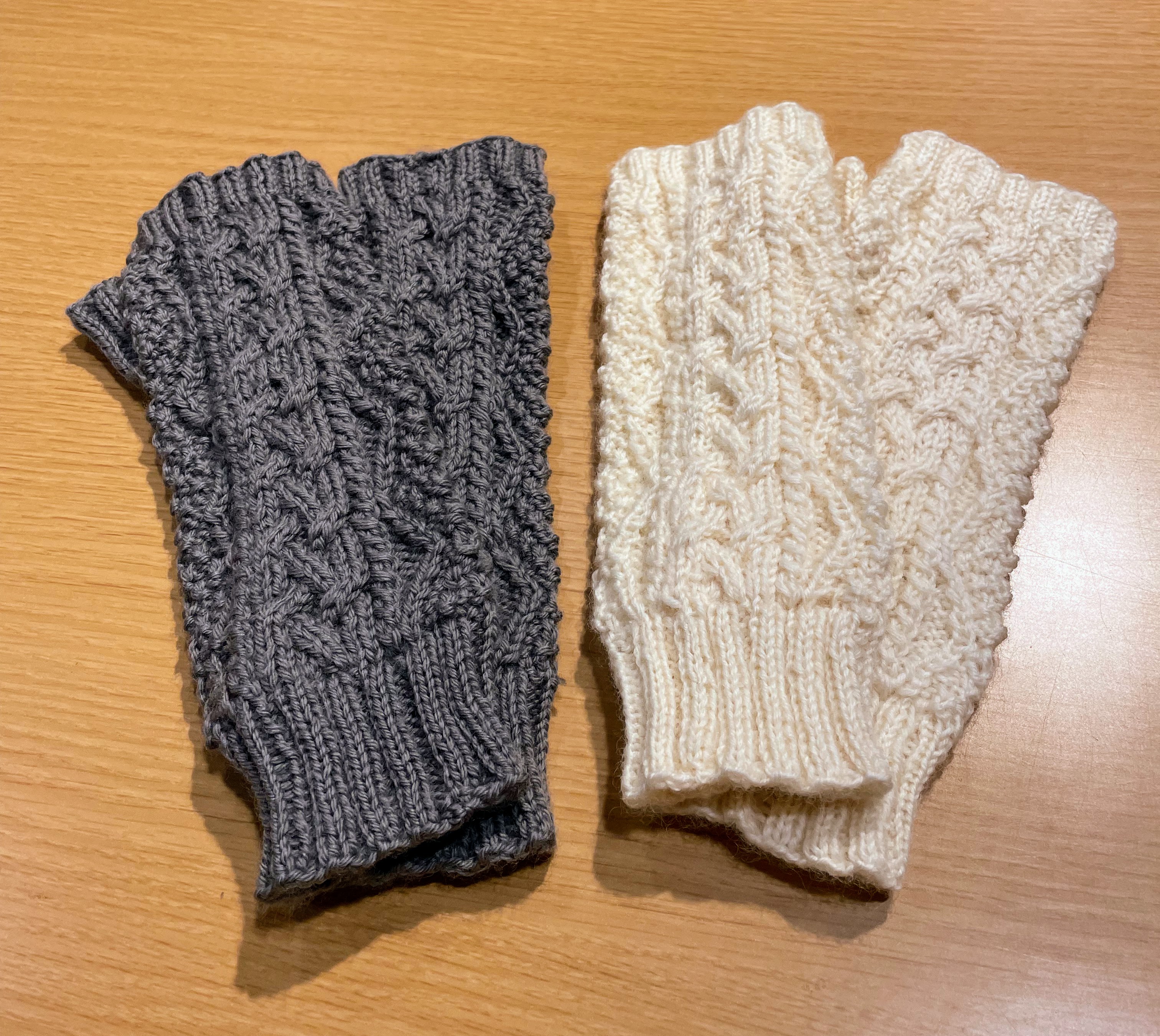あのややこしいハンドウォーマーを2ペアも編まれたので