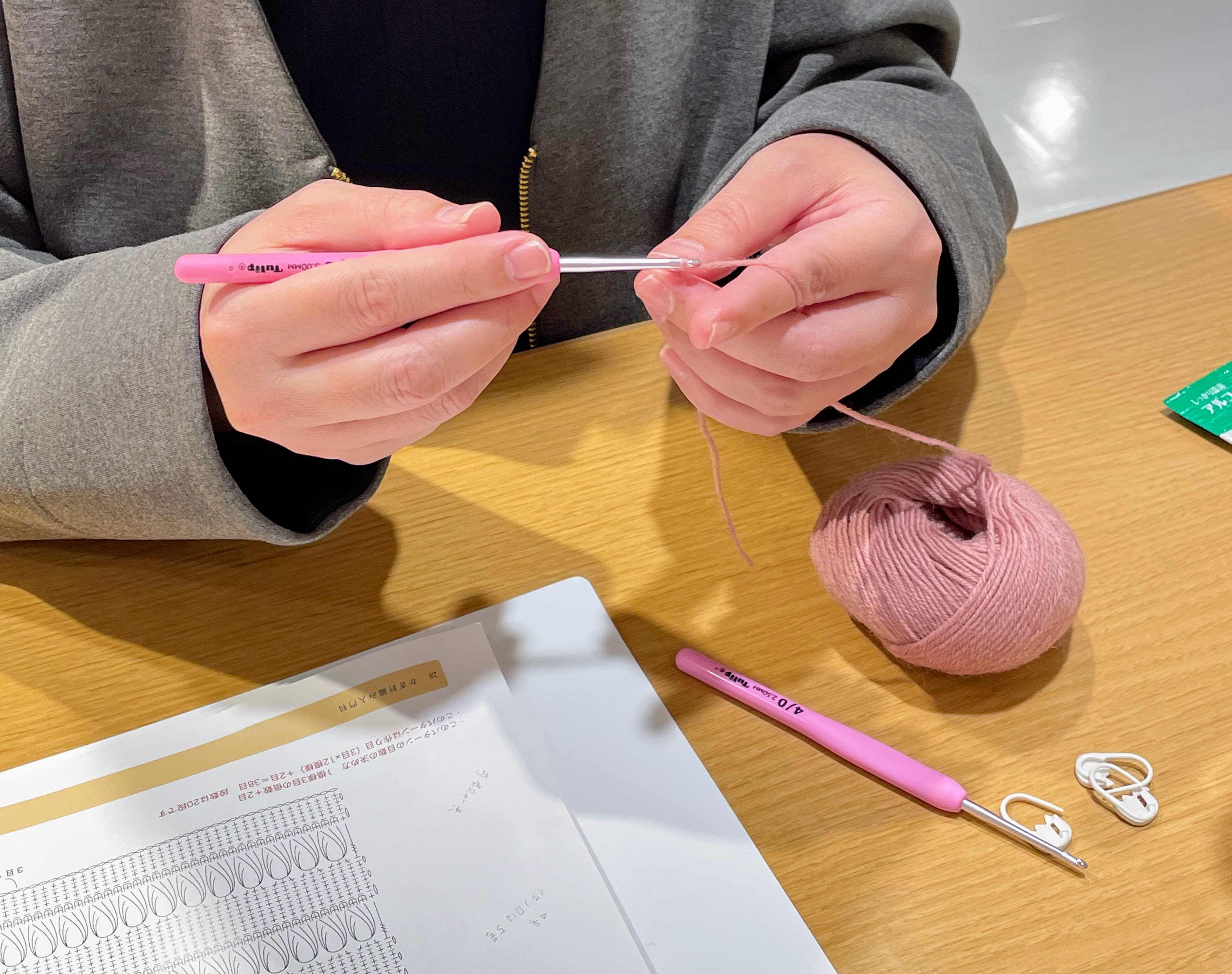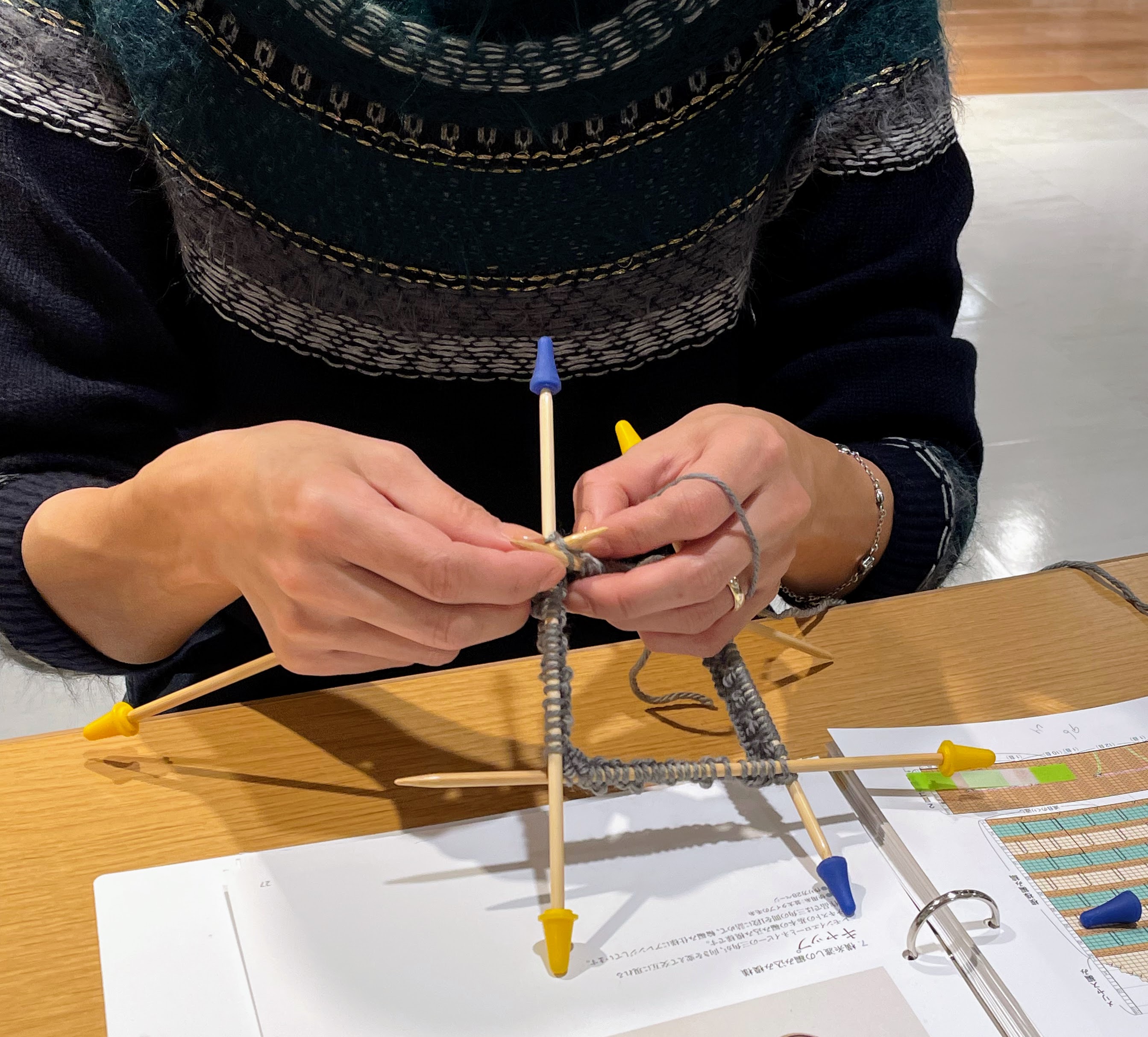 編み図を見ながら、慎重に編み進めていらっしゃいました。