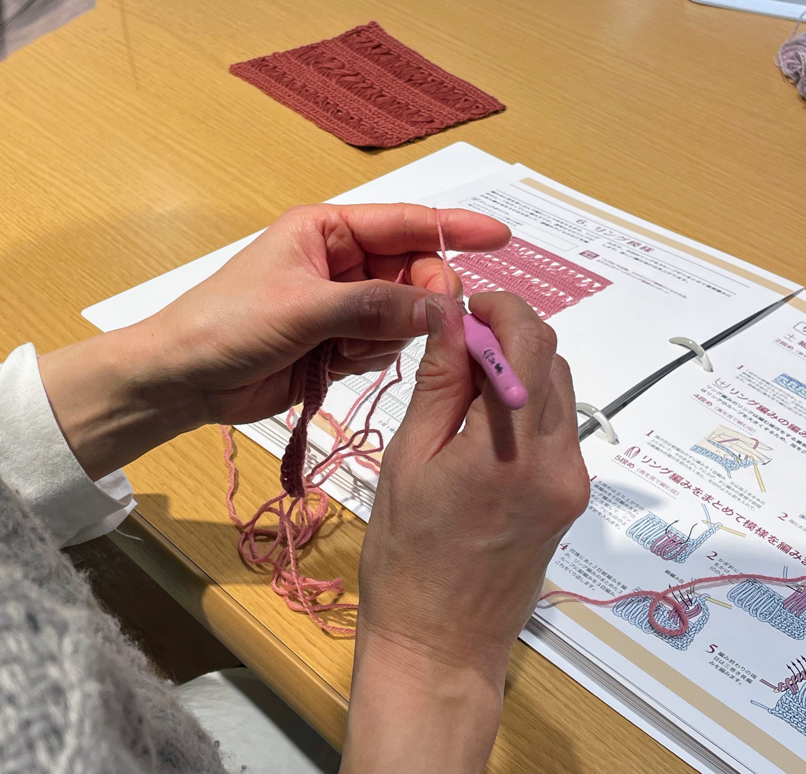 次のテーマ・玉編みの模様に取り組んでいただきました。