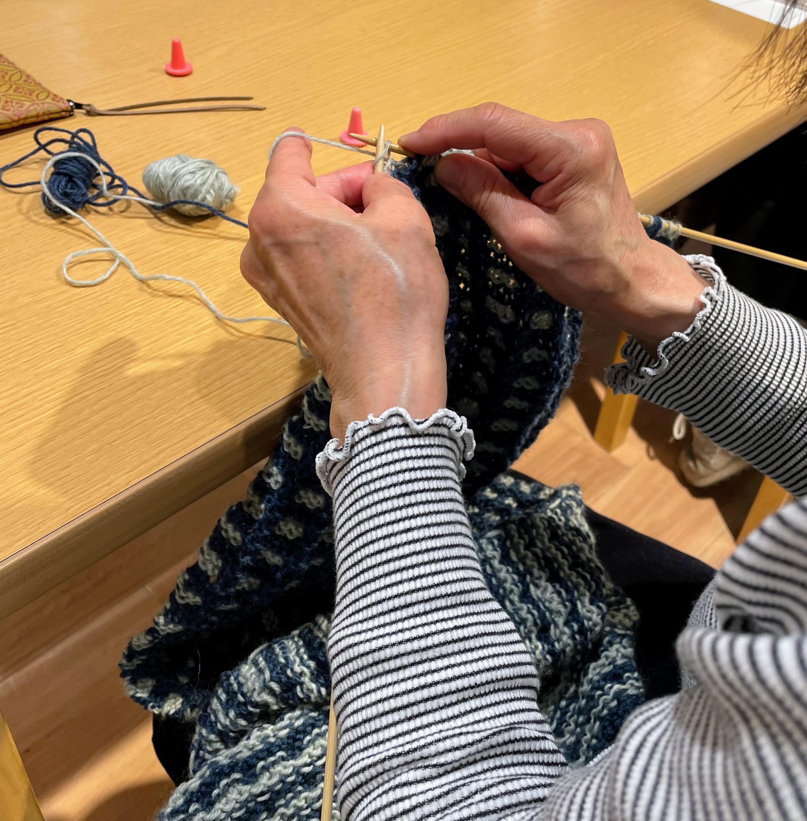 すべり目のマフラーを編んでいらっしゃるお方です。