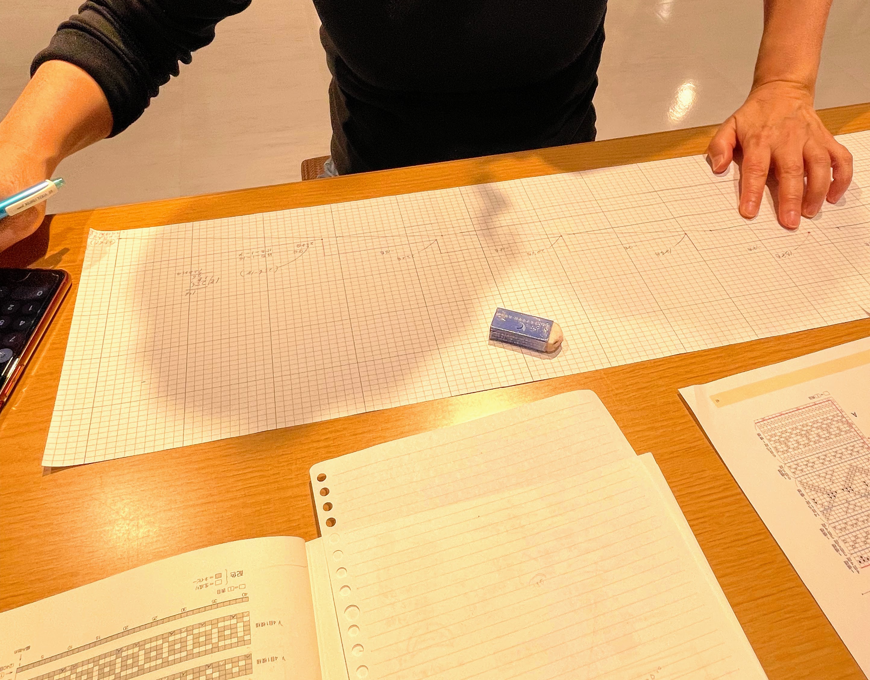 各模様ごとに平均計算しながら、階段状に編み目を書いていきます。