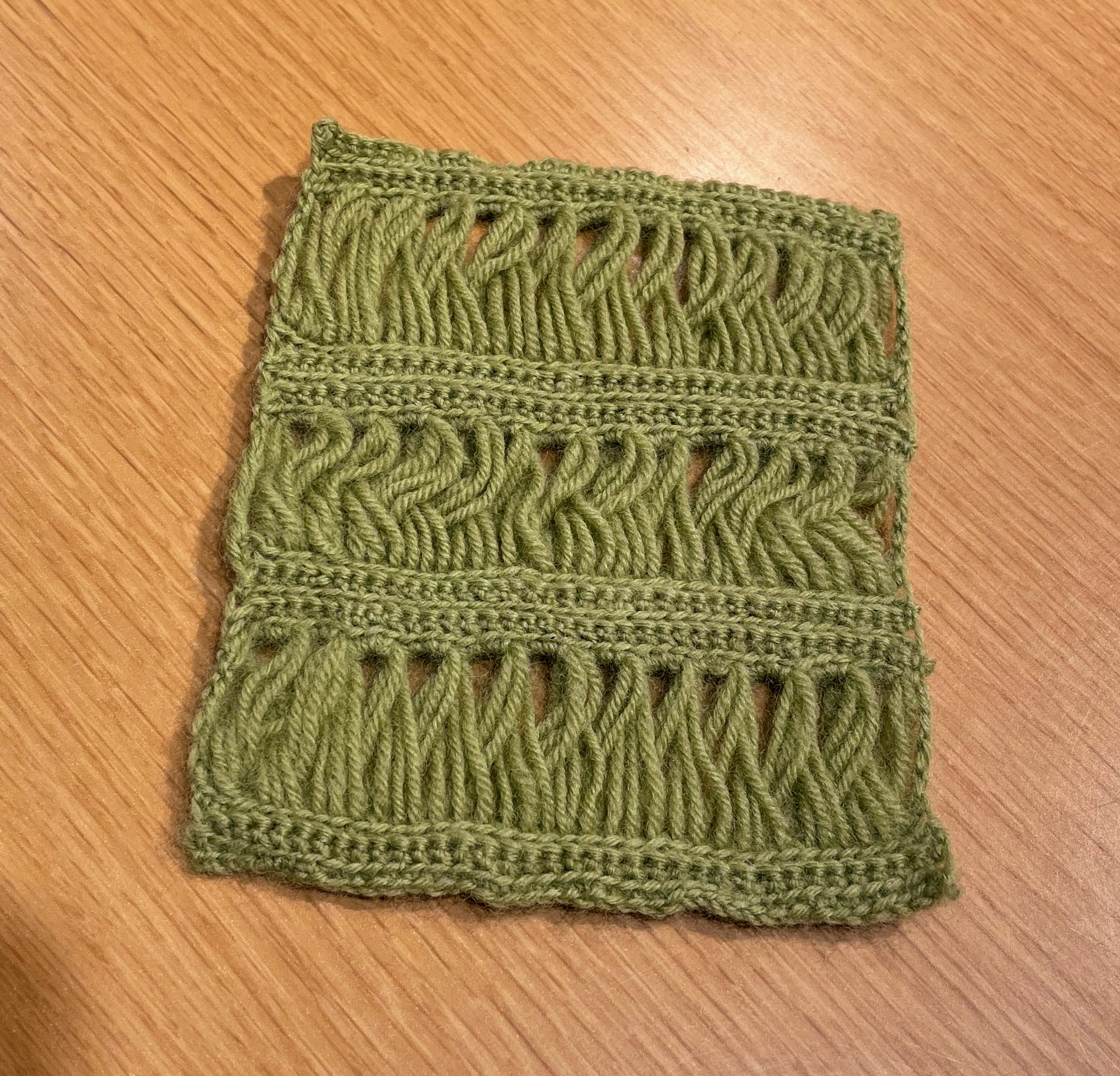 まずは前回のパターン課題のリング編みの模様と
