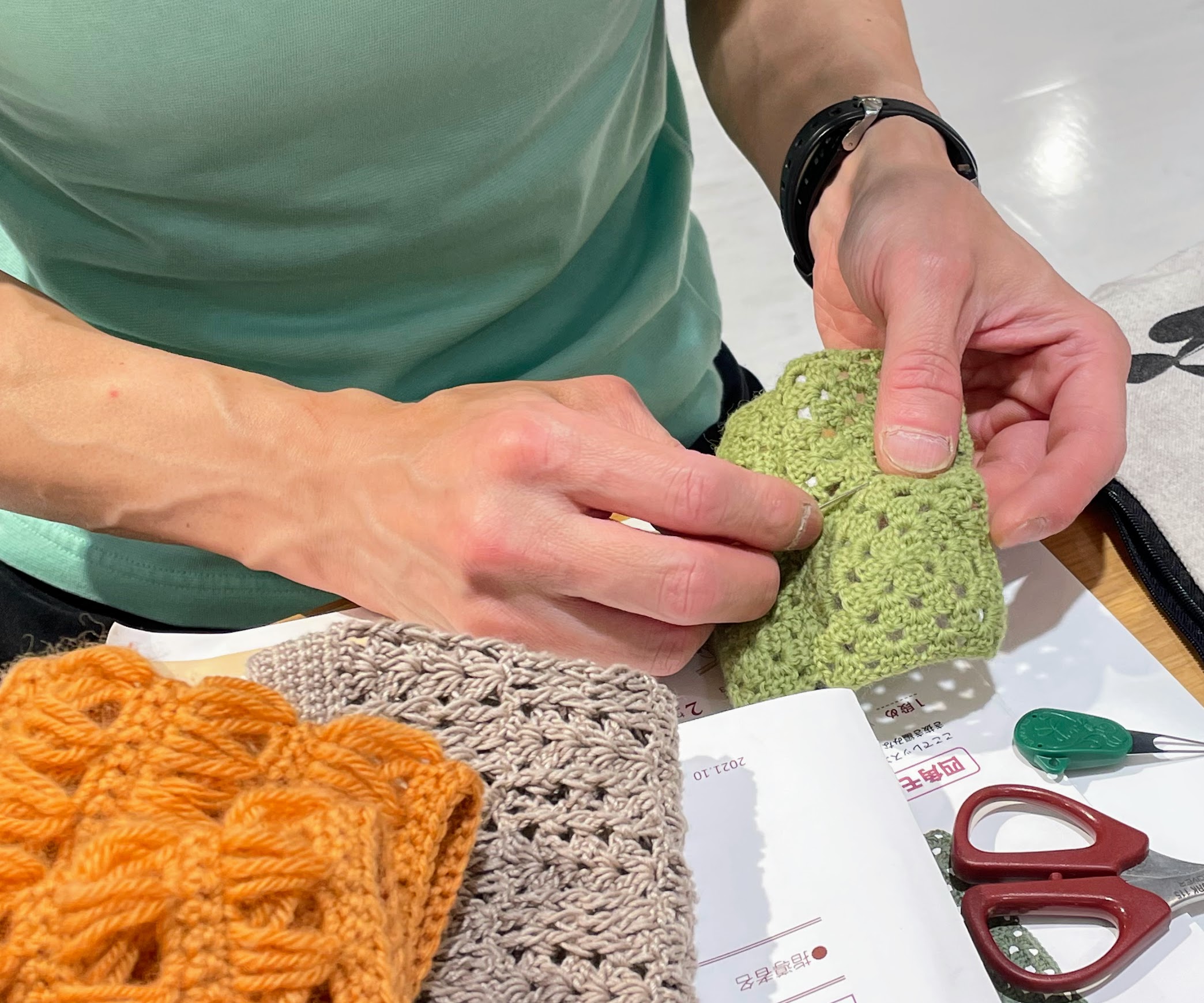 日本手芸普及協会<かぎ針編み入門科>に取り組んでいらっしゃるお二方でした。