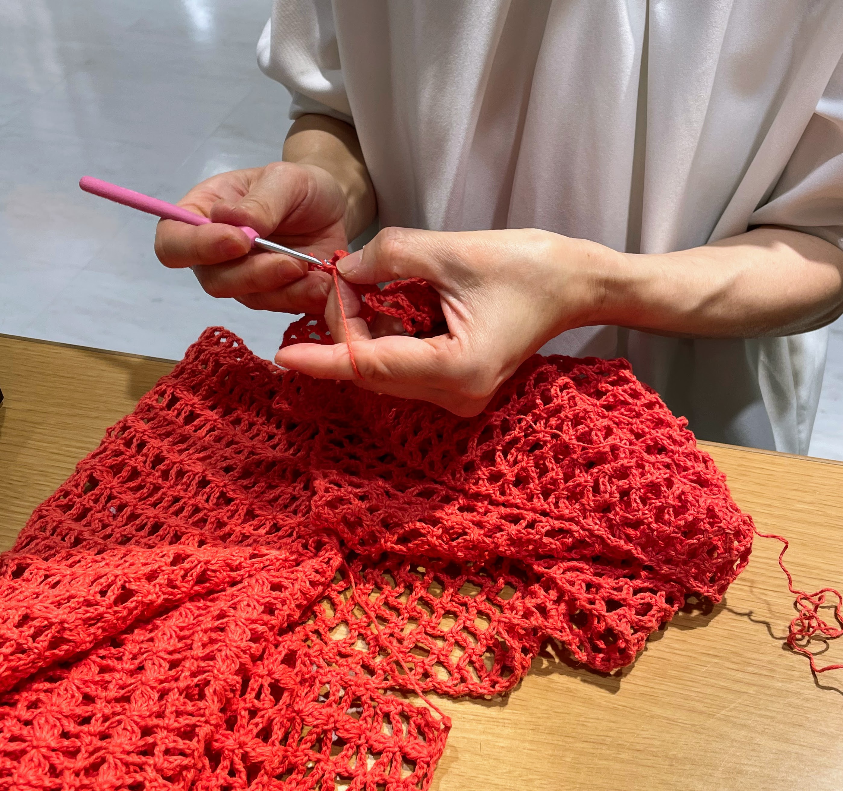 編み始めと編み終わりを引き抜きしながらつなぐ作業に取り組んでくださいました。