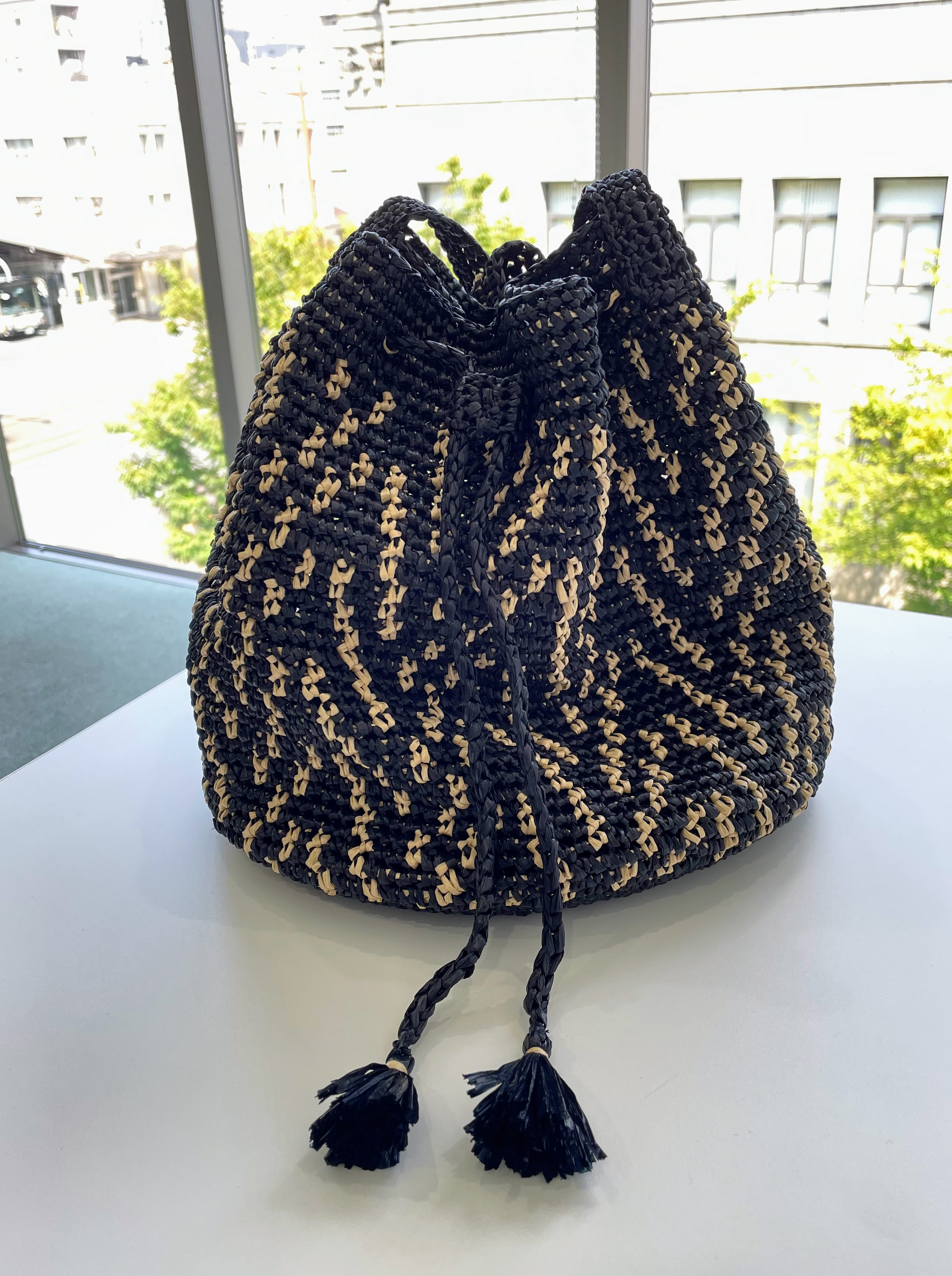 棒針編みで夏バッグ