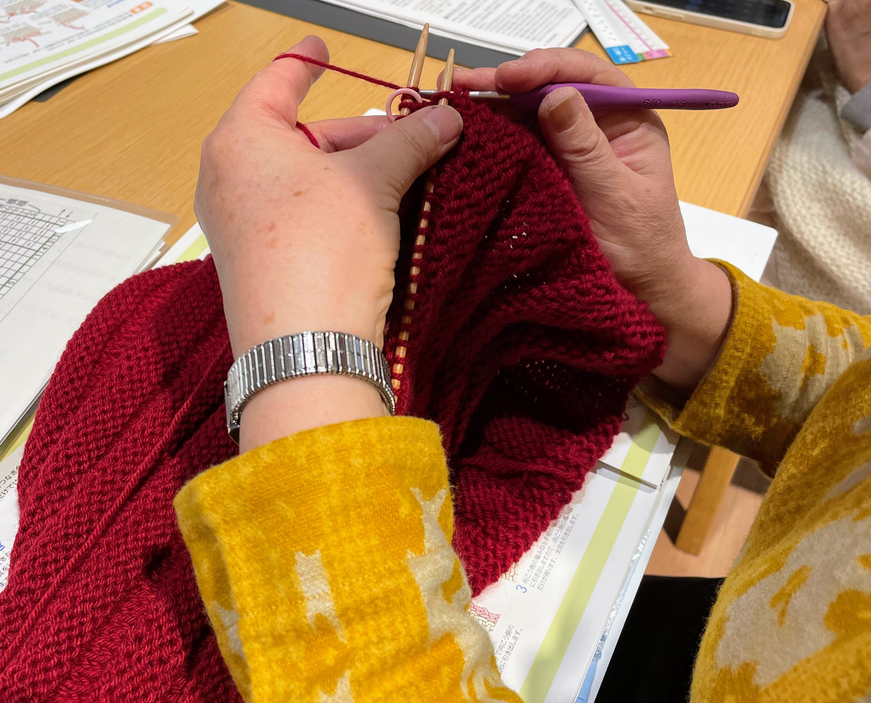 すいすい編んでいらっしゃって、ブラボーでしたー
