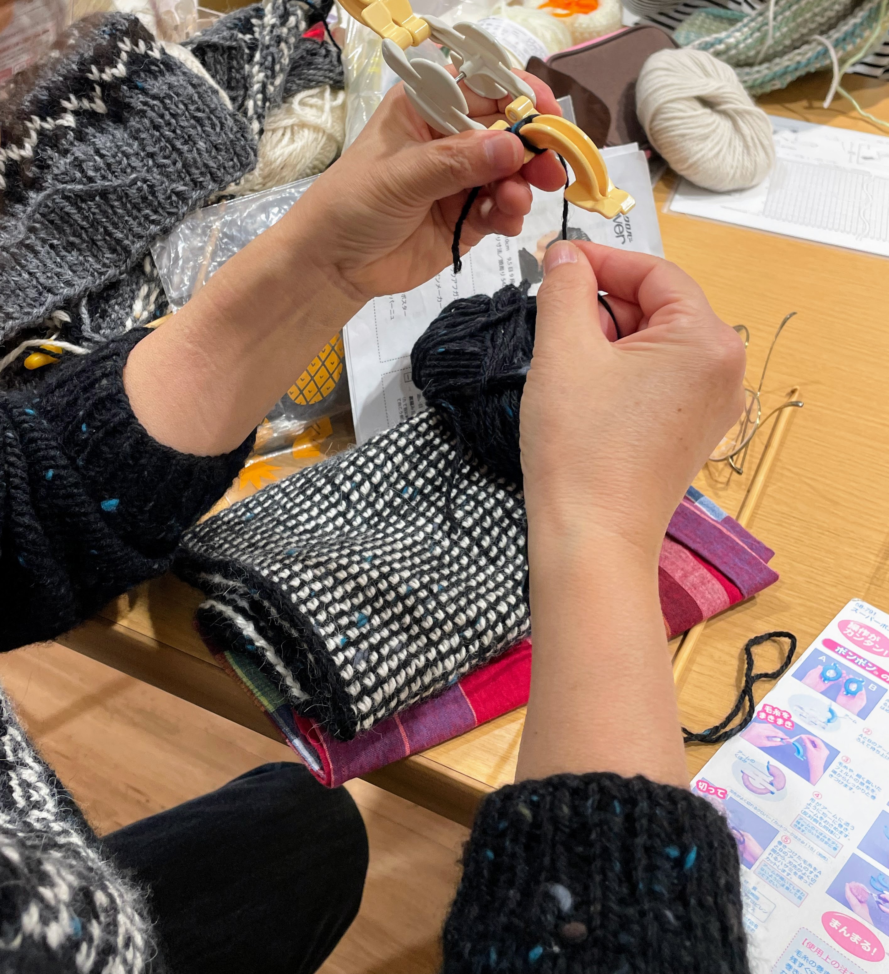 その後、糸始末とポンポンを作っていただき(ポンポンメーカー使用