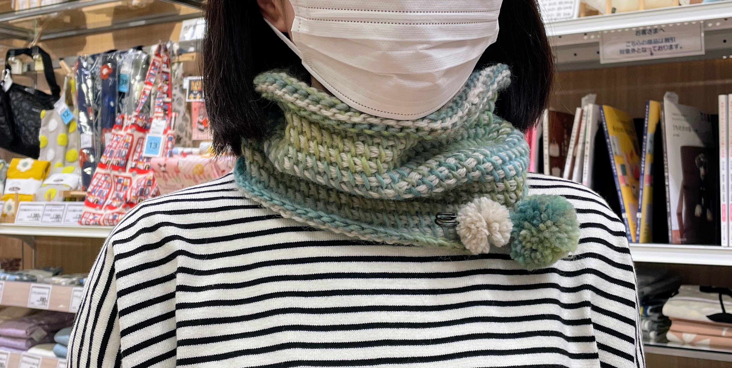 その後は、小物課題のスヌードの仕上げに取り掛かっていただきました。