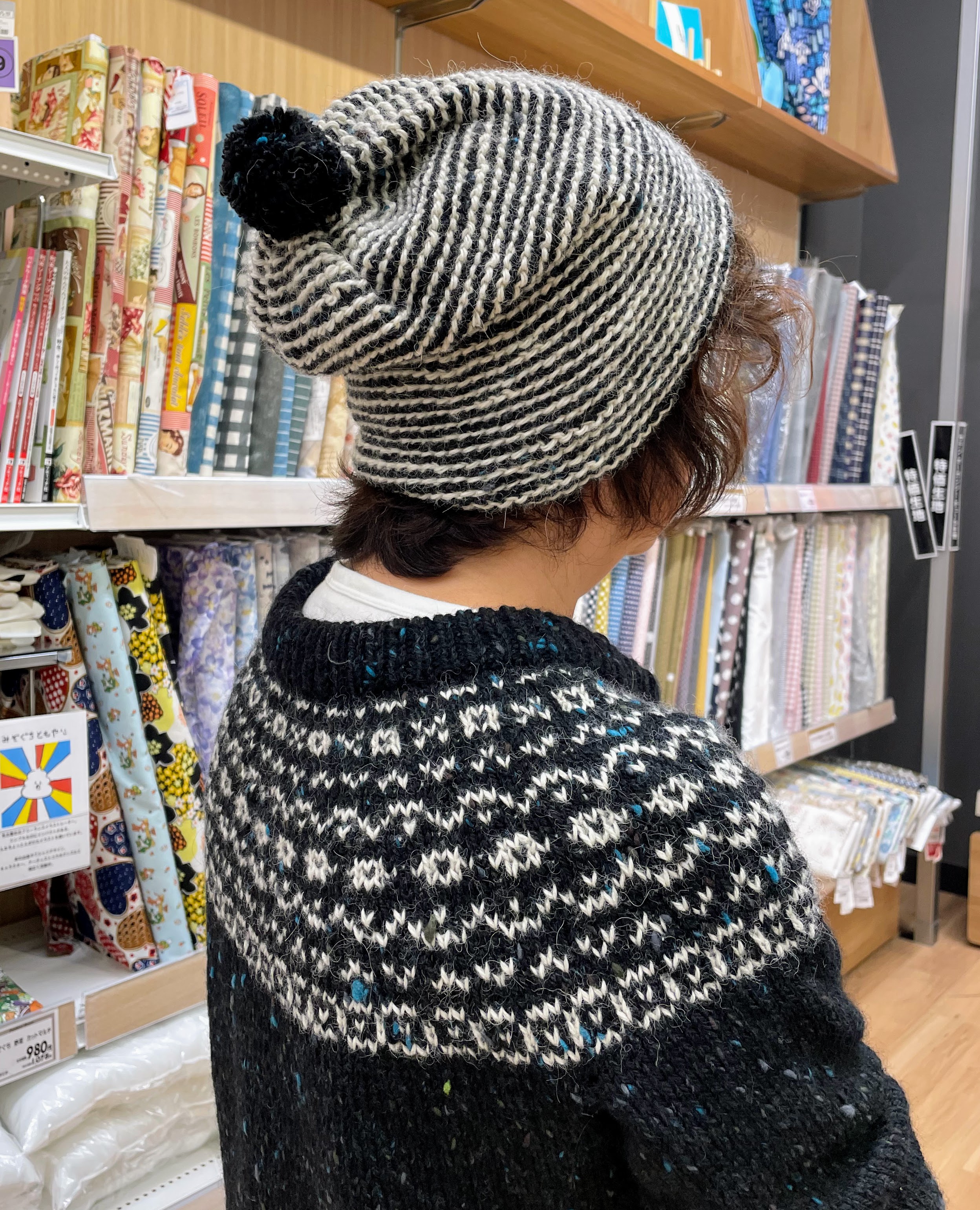 しかも、ご自分で編まれた丸ヨークセーターの残り糸を使っていらっしゃったので