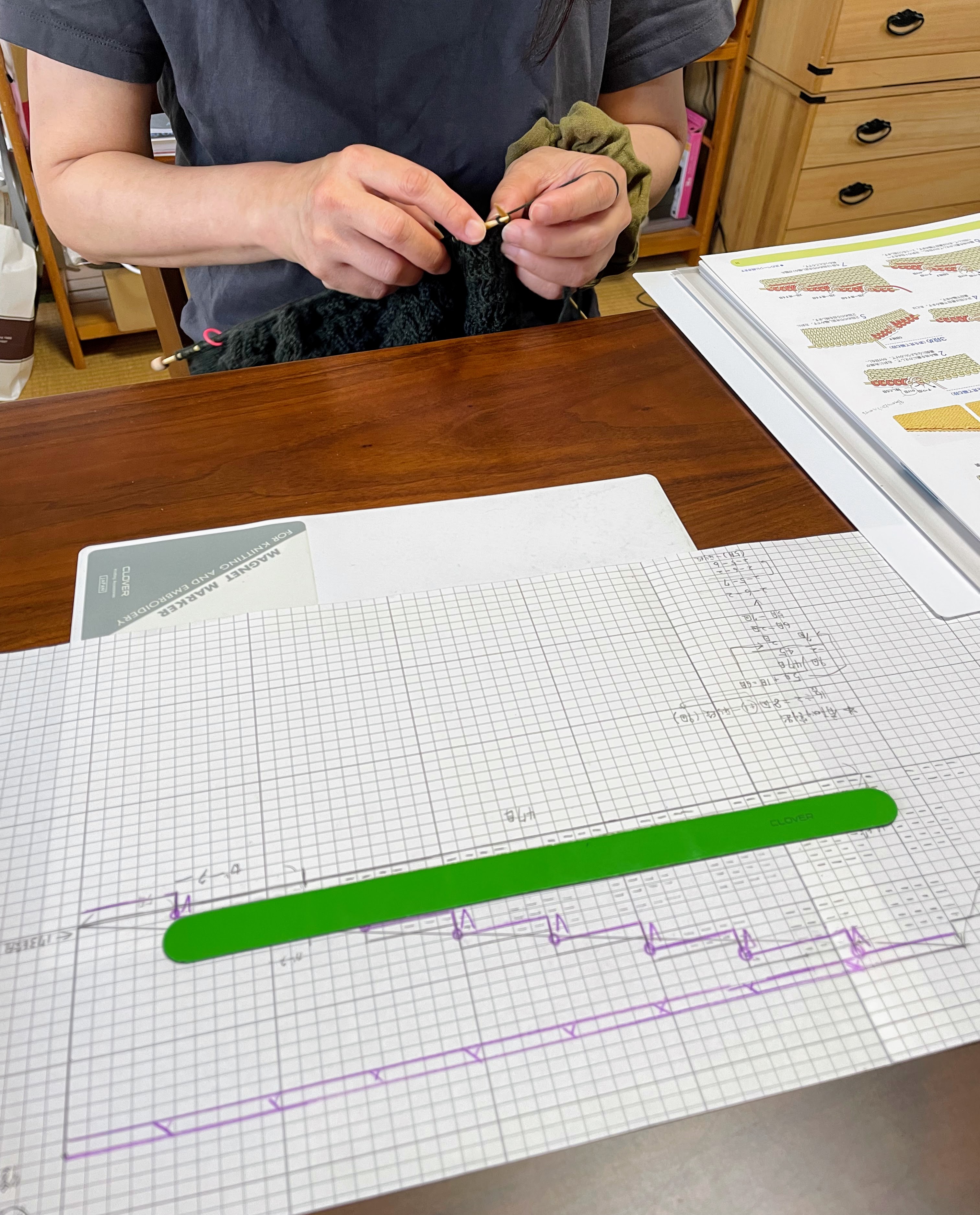 肩下がりの引き返し編みをみっちり行っていただきました。