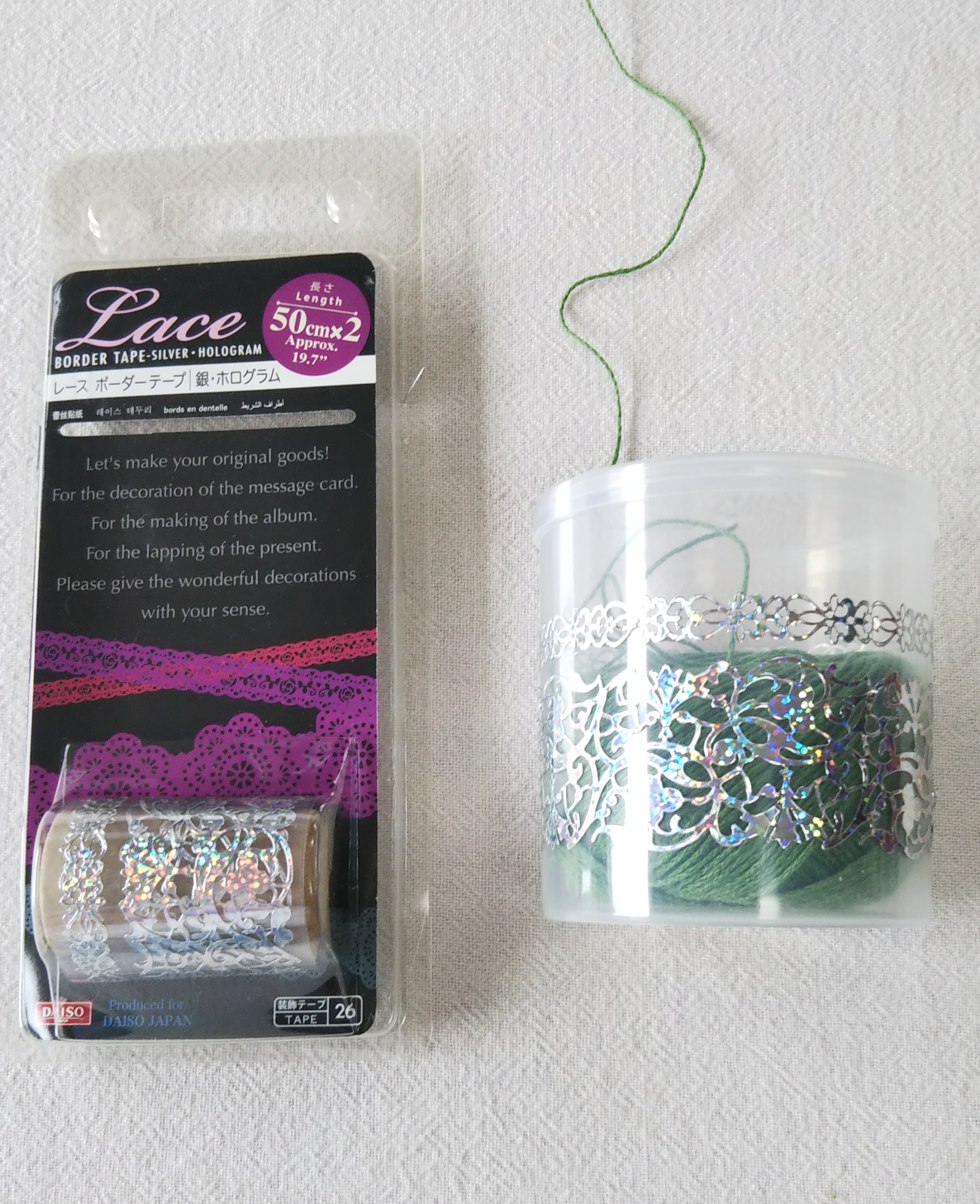 手持ちのレーステープ(ダイソー)でデコりまして。
