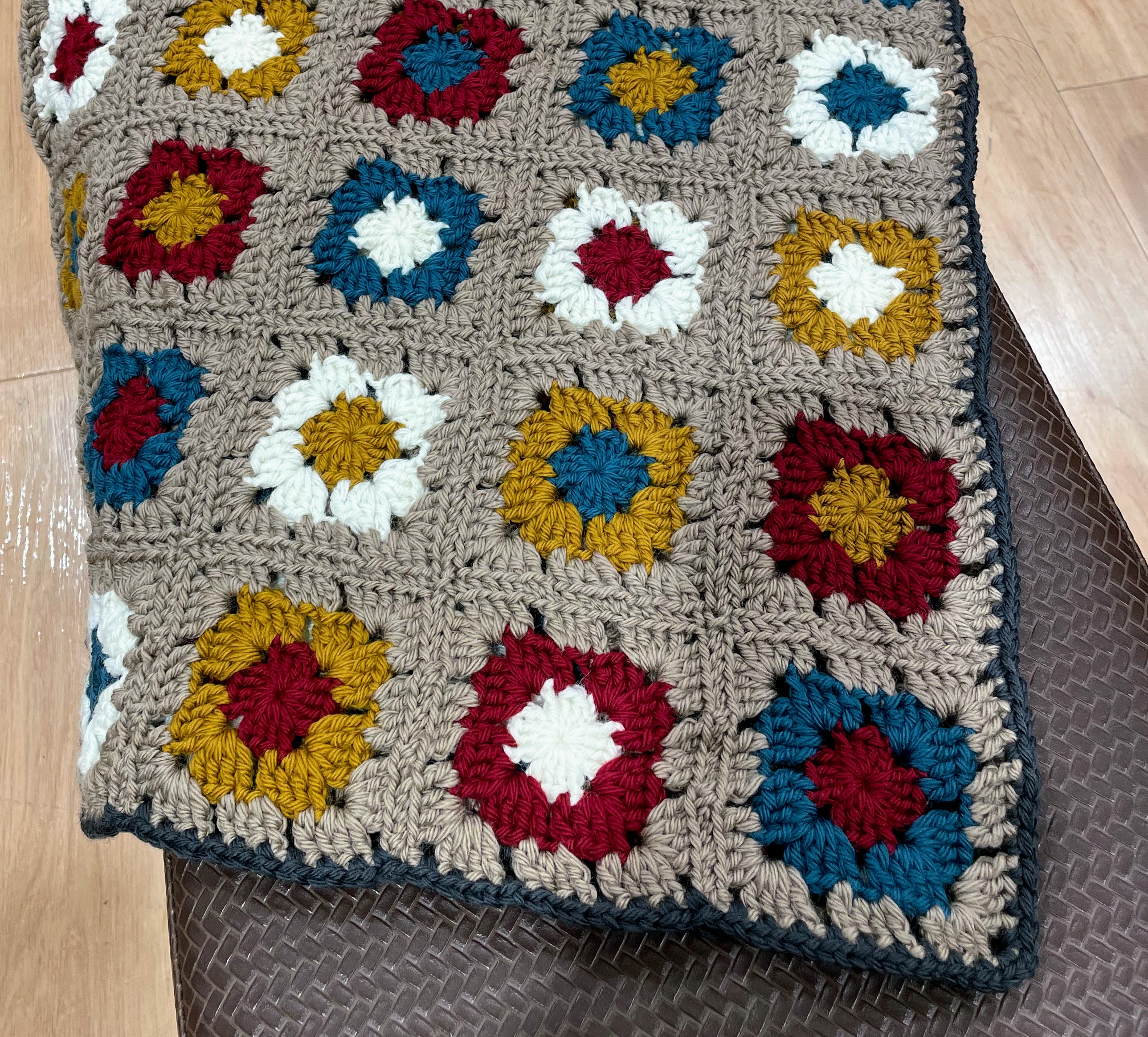 アフガン編みでミニマフラーを編んでいただいたのですが