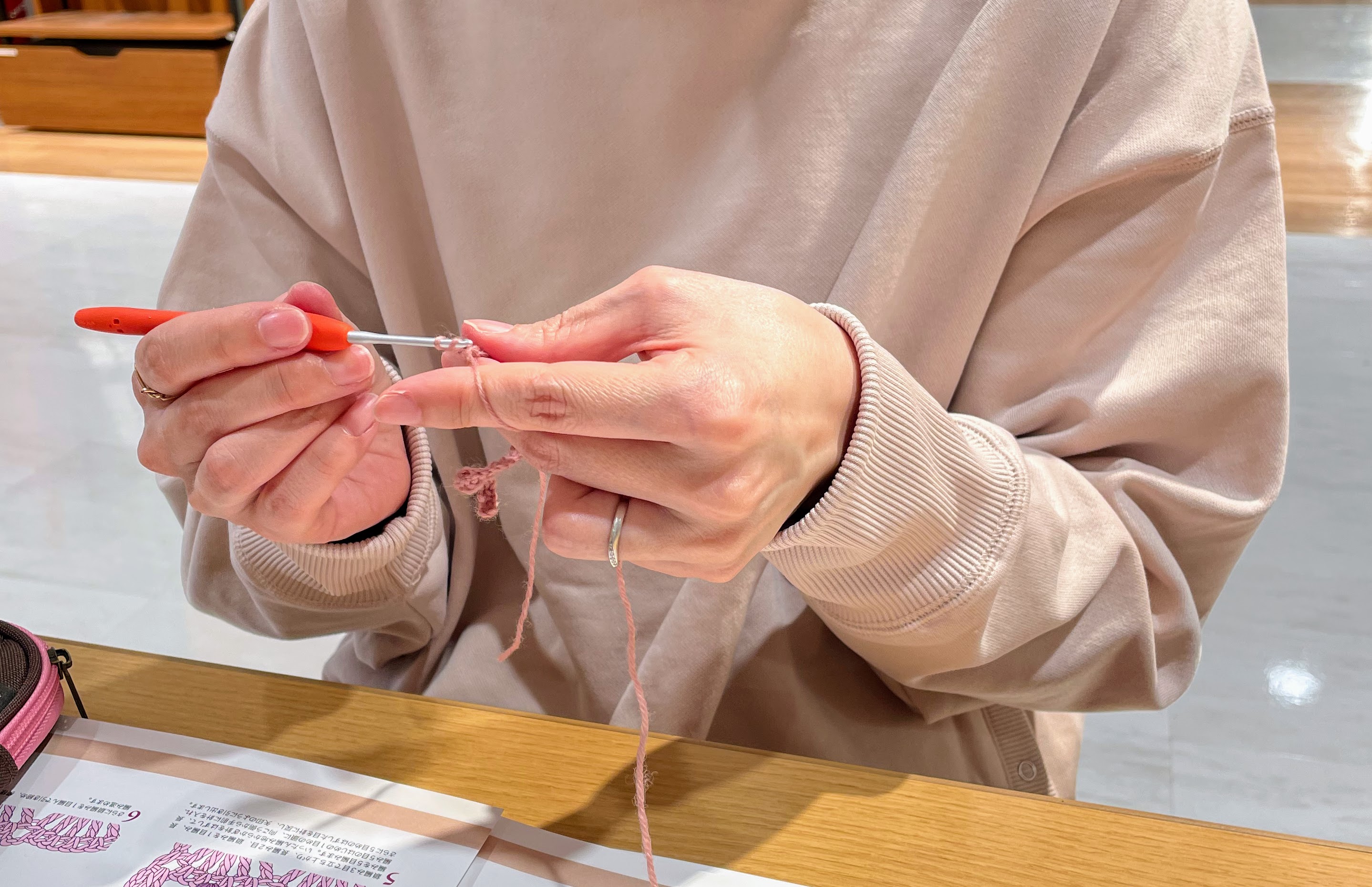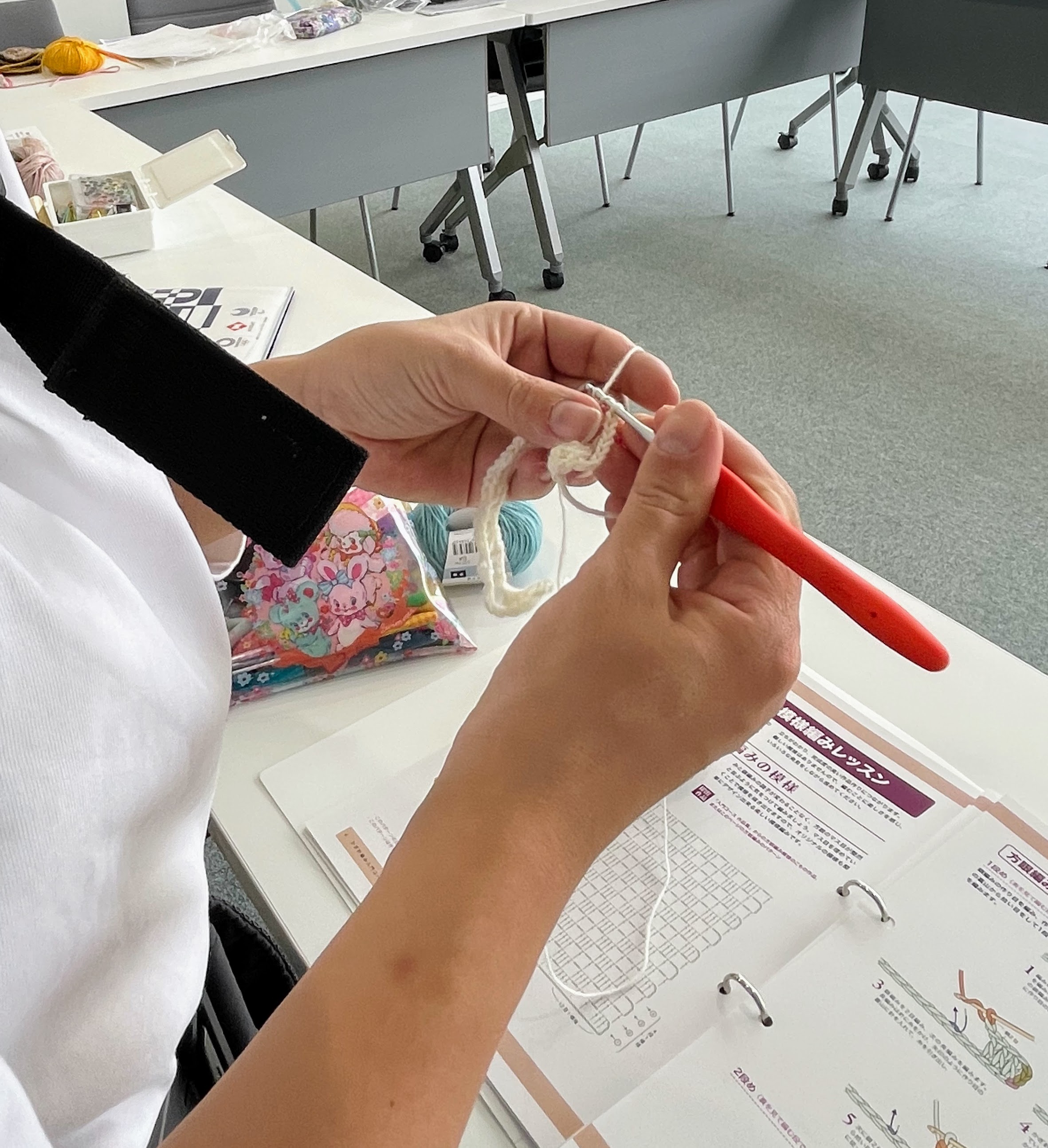軽くご説明してから、編み始めていただきました。