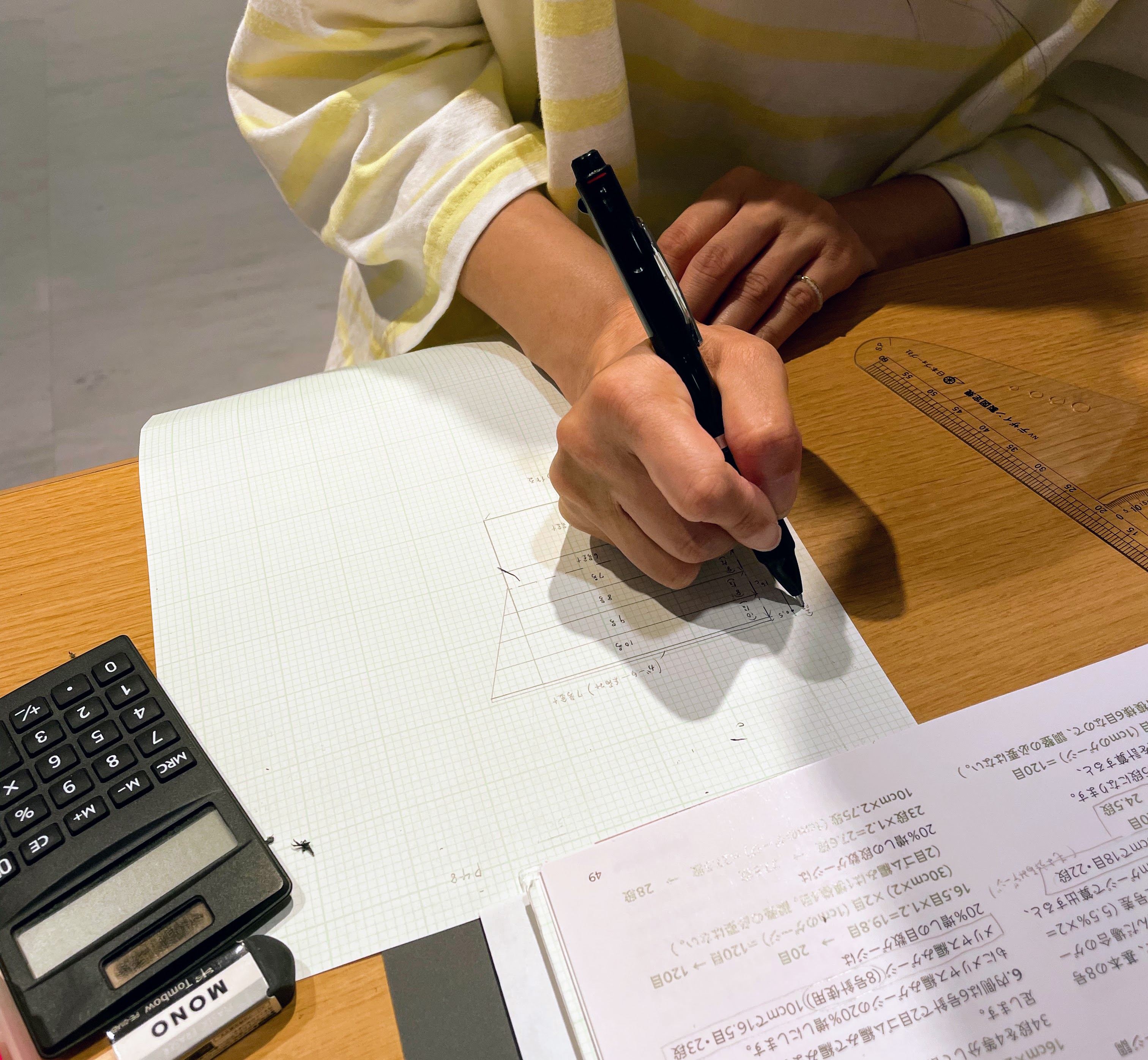 前回のレッスンでは、肩下がりや衿ぐりの割り出しを行っていただきました。