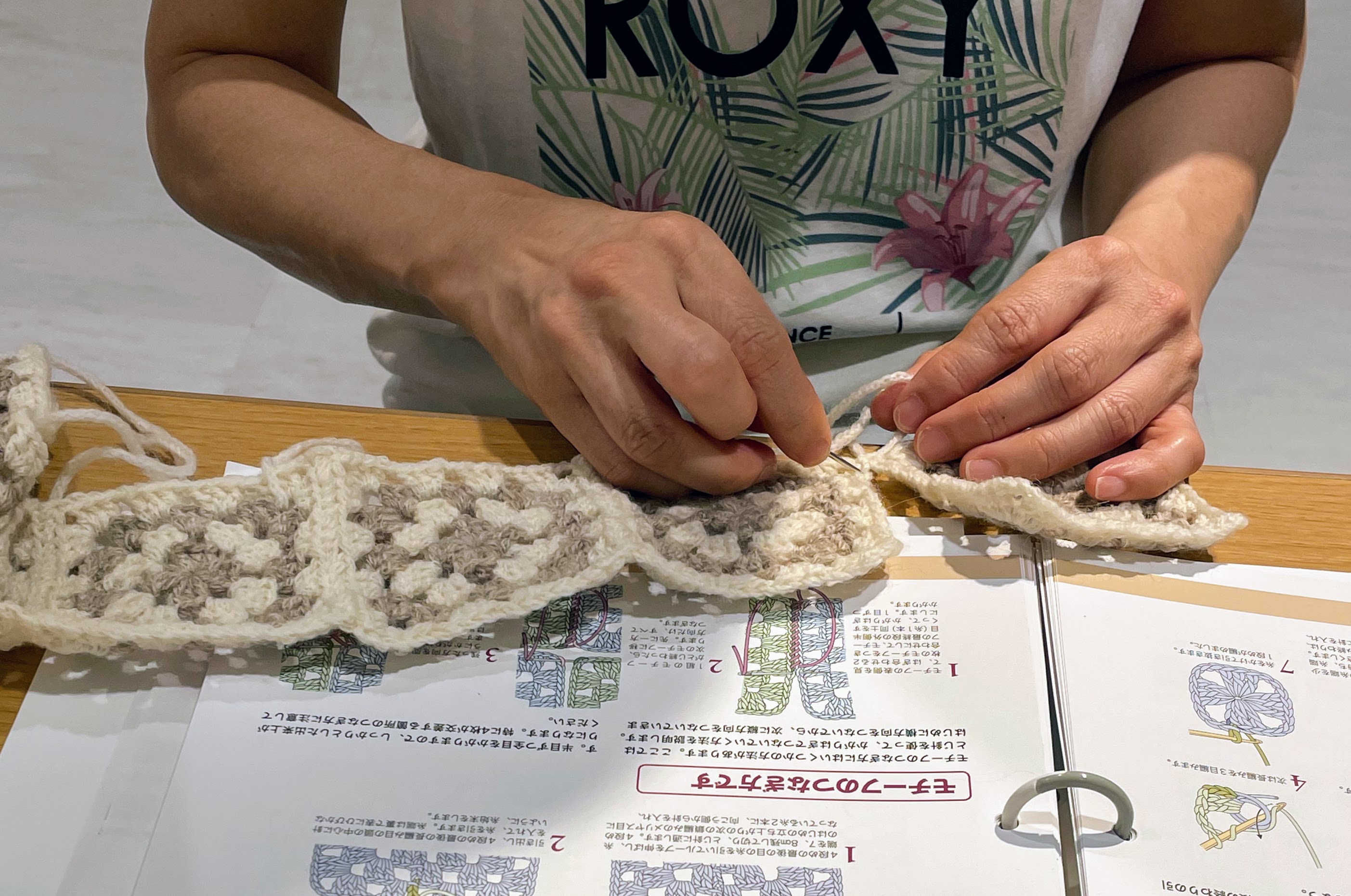 この日はおうちで編んできてくださったモチーフをつないぐところから。