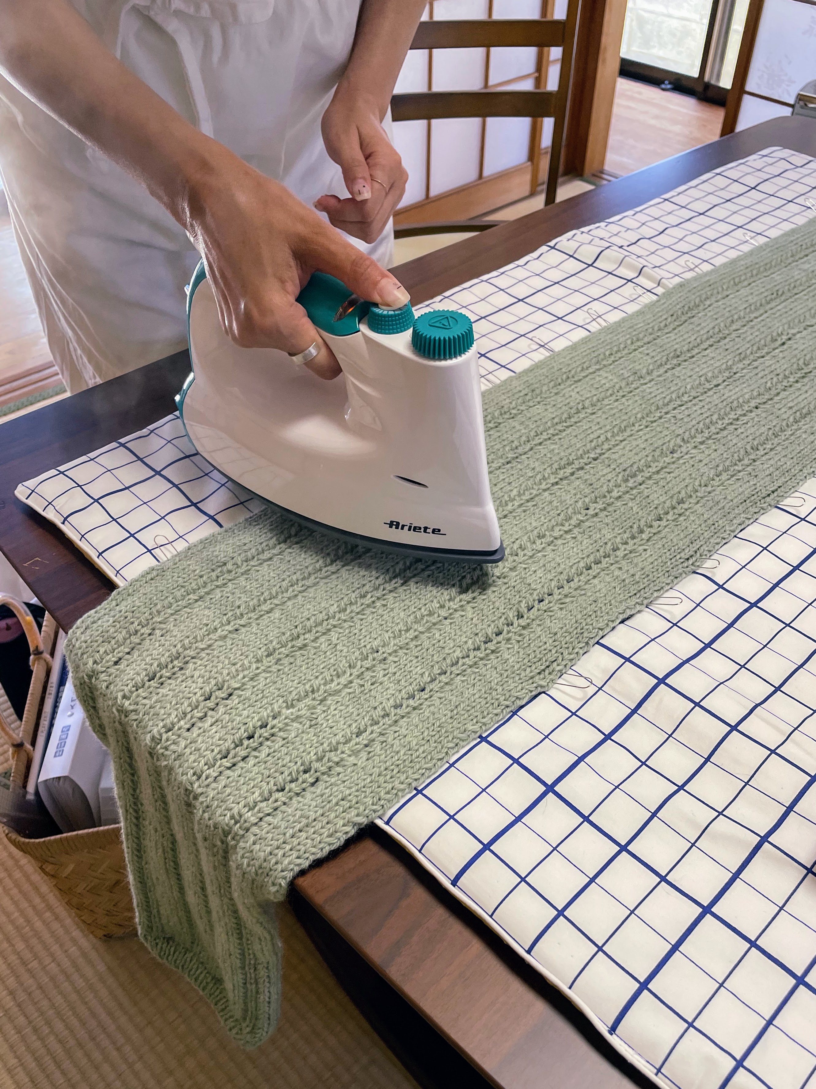 そして、小物課題のミニマフラーはアイロンがけして